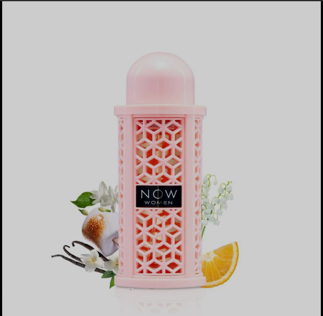 Now Women, de Rave, es una fragancia femenina juguetona y gourmand que abre con notas vibrantes de frutas rojas y naranja, evoluciona hacia un corazón cremoso de malvavisco, lirio de los valles y jazmín, y culmina en un fondo acogedor de vainilla, almizcle y musgo, adquiriendo un efecto dulce y terroso que equilibra su feminidad con carácter